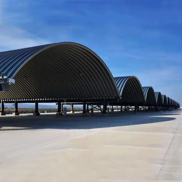 Οι τοξωτές πλάκες οροφής είναι τυλιγμένες με γαλβανισμένα φύλλα χάλυβα με σύνδεση με μηχανική άκρη κλειδώματος. Το κύριο υλικό είναι η δομική δομική χαλύβδινη πλάκα ψυχρής έλασης, με γαλβανιστική ποσότητα τουλάχιστον 200g/m2. Η επιφάνεια είναι επικαλυμμένη με εκκινητή και στρώμα, το οποίο έχει καλή απόδοση κατά του διάσημο. Η ειδική δομή διασφαλίζει ότι η οροφή είναι φυσικά αδιάβροχη, χωρίς διαρροή. Η διάρκεια ζωής μπορεί να φτάσει τα 30-50 χρόνια.